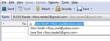 - If Thunderbird finds multiple contacts it will give you a list from which to choose one. When you type the letter "j", Thunderbird finds John Smith and Jane Doe in the Address Book. Click the desired contact to add it to the email.